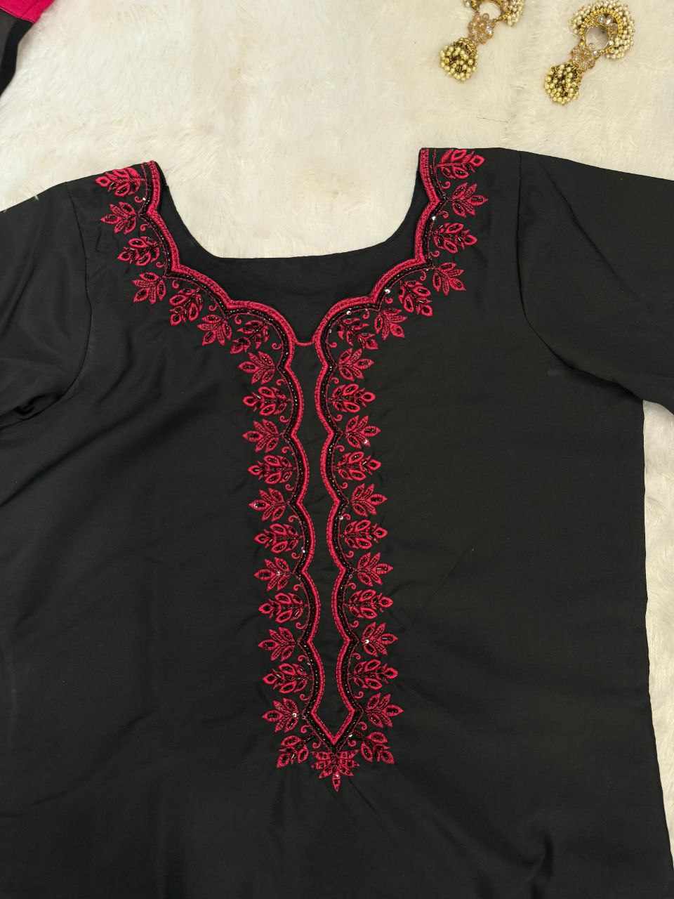 Top – Pure French Crepe kurta with exquisite bead, sequence handwork, and embroidery detailing