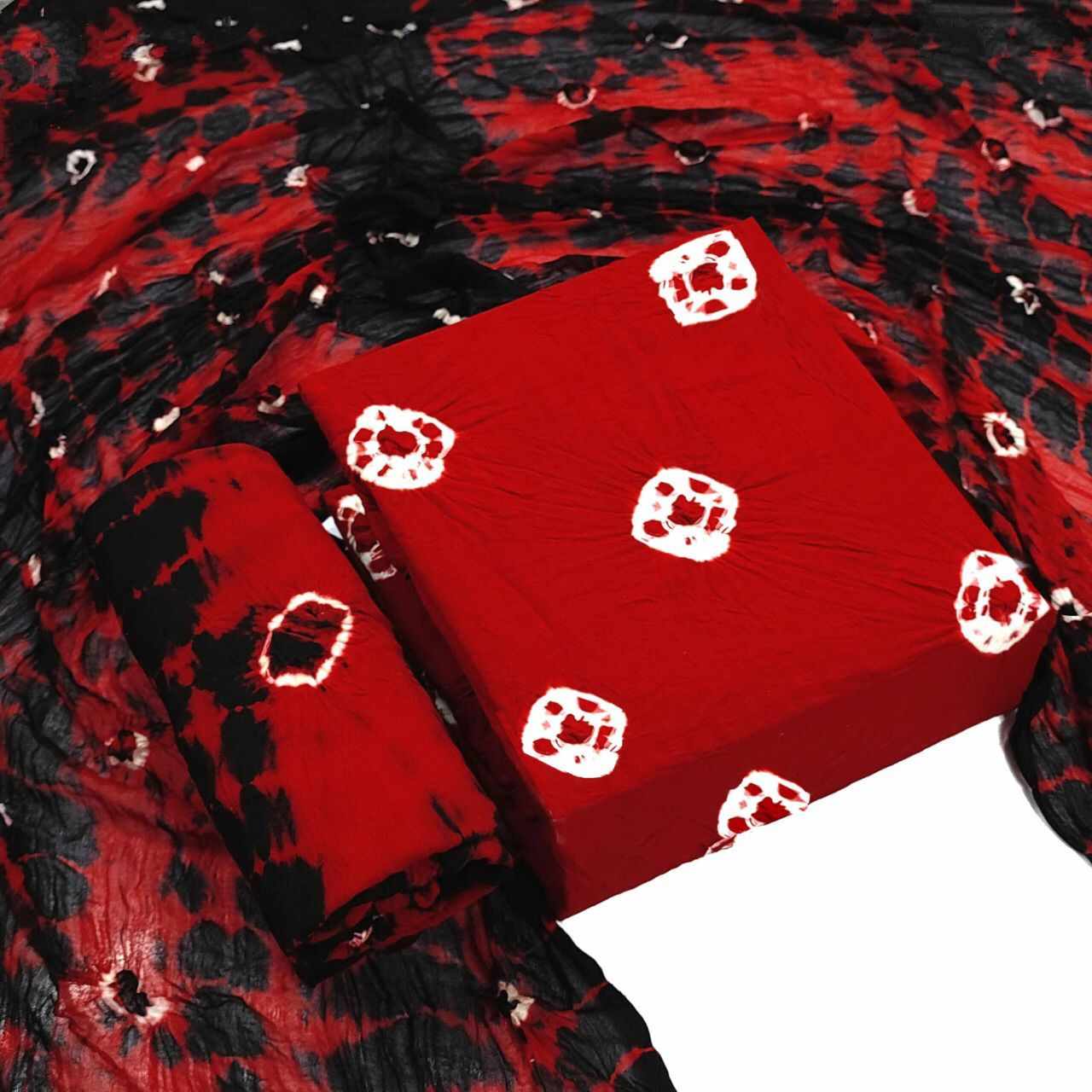| Name : | HEER RED Pure Rayon Bandhni Dress Materail |