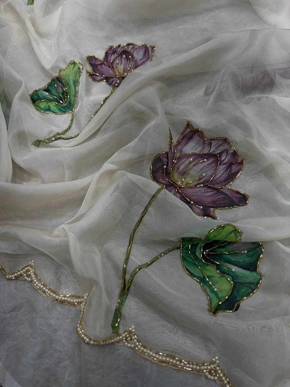 Reviews for NC 5386 Soft Organza White Beautiful floral print Saree