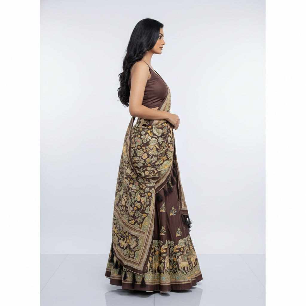 PIYU 23-2 Silk Digital Print Brown Lehnga