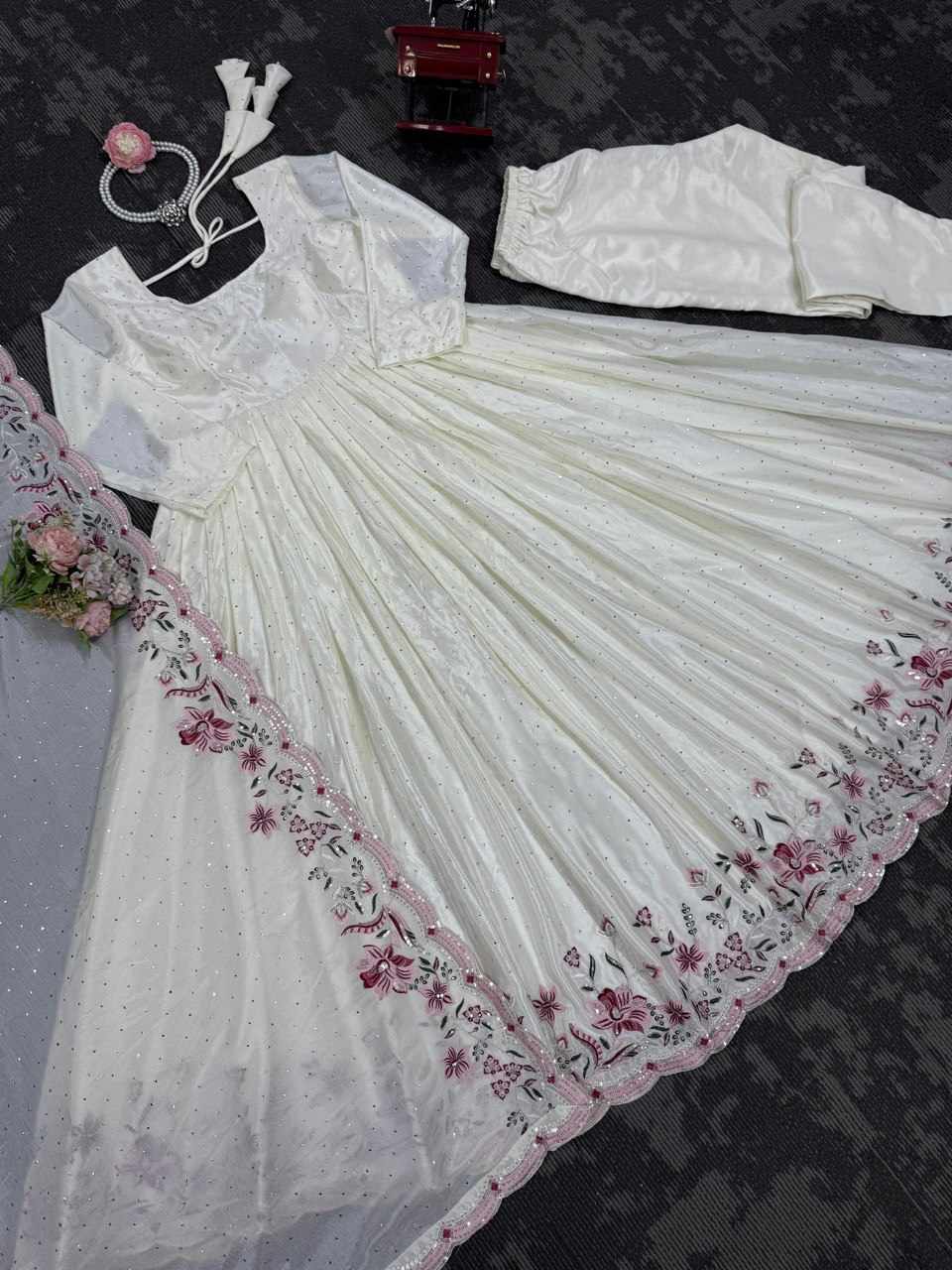 | Name : | RTC 5873 Chinon silk thread with Sequnce Off White Readymade Dress |