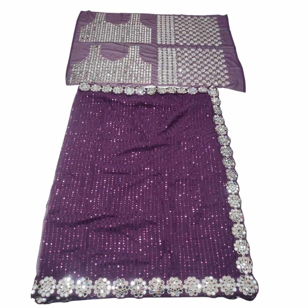 Heavy Georgette Blouse With Heavy Embroidery Front & Back With sleeves With Heavy Original Mirror