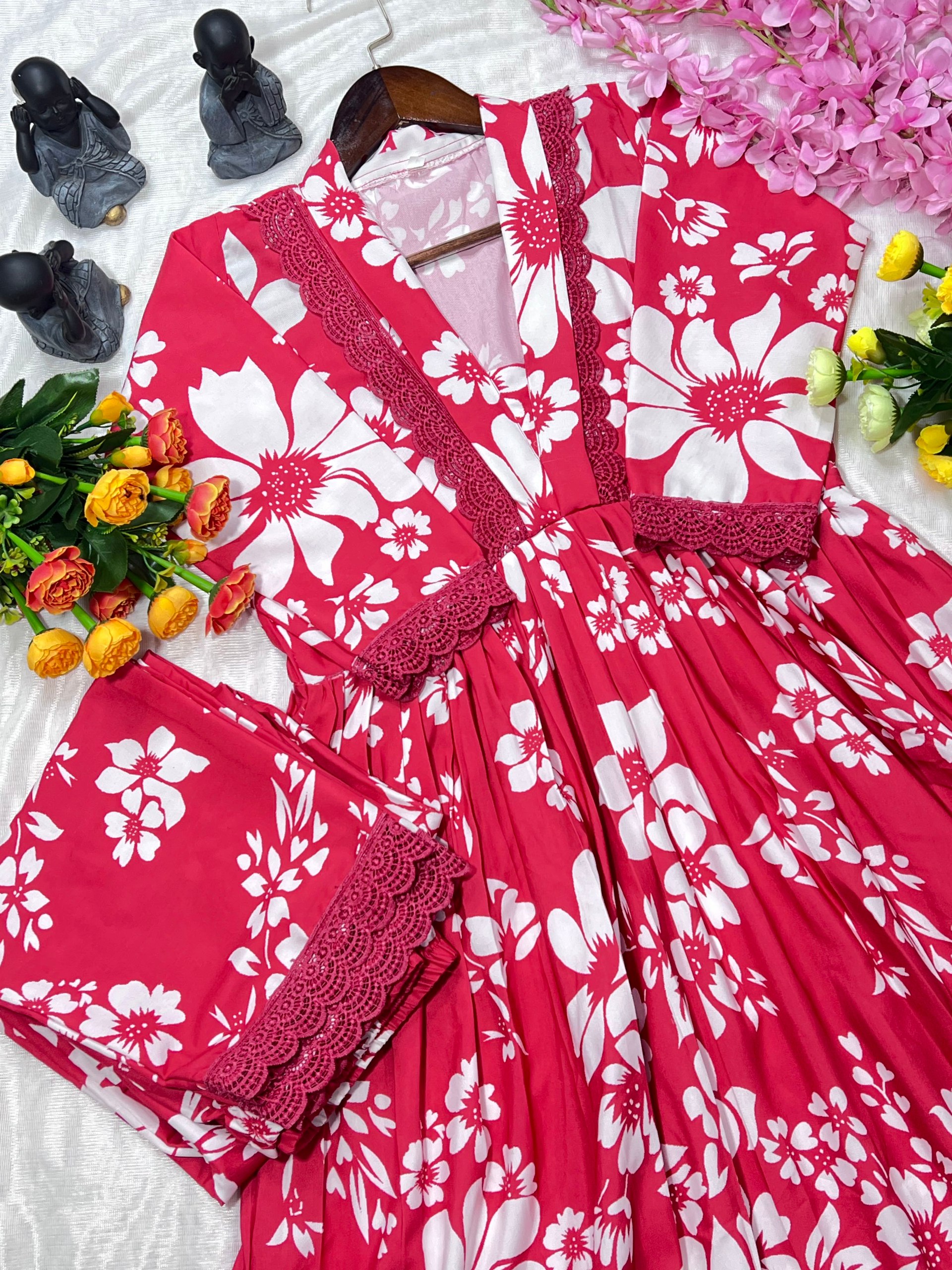 JKWH 998 Pure Fine Cotton Febric Embroidery Work A-line Kurti Set With Pocket